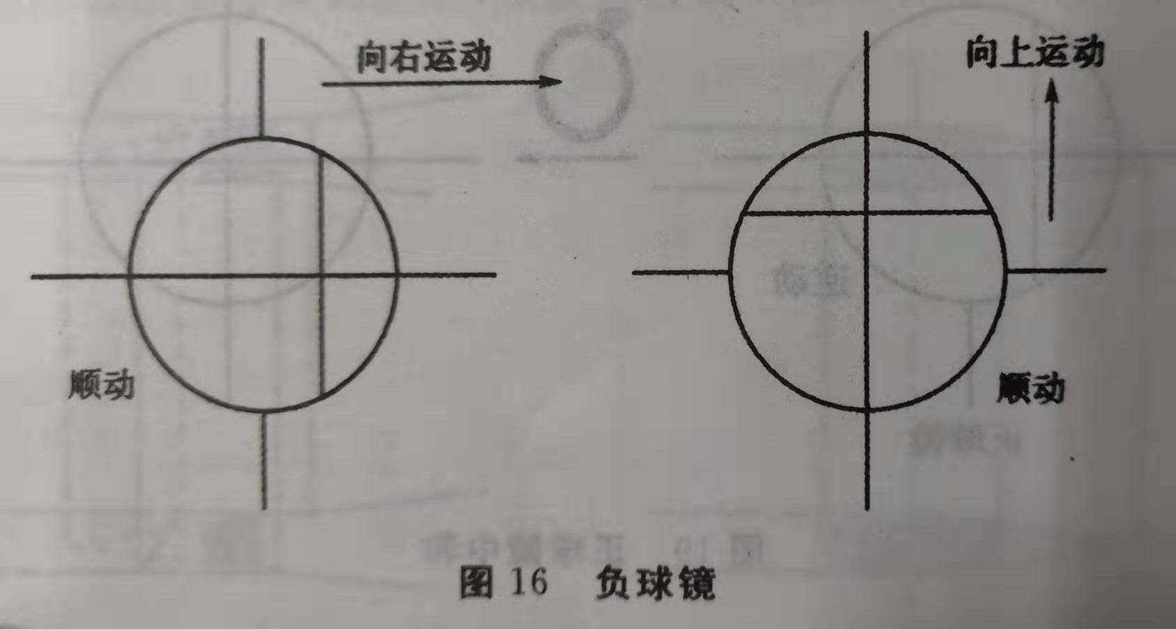 (1)负球镜:无剪动,两侧均顺动(图16)。