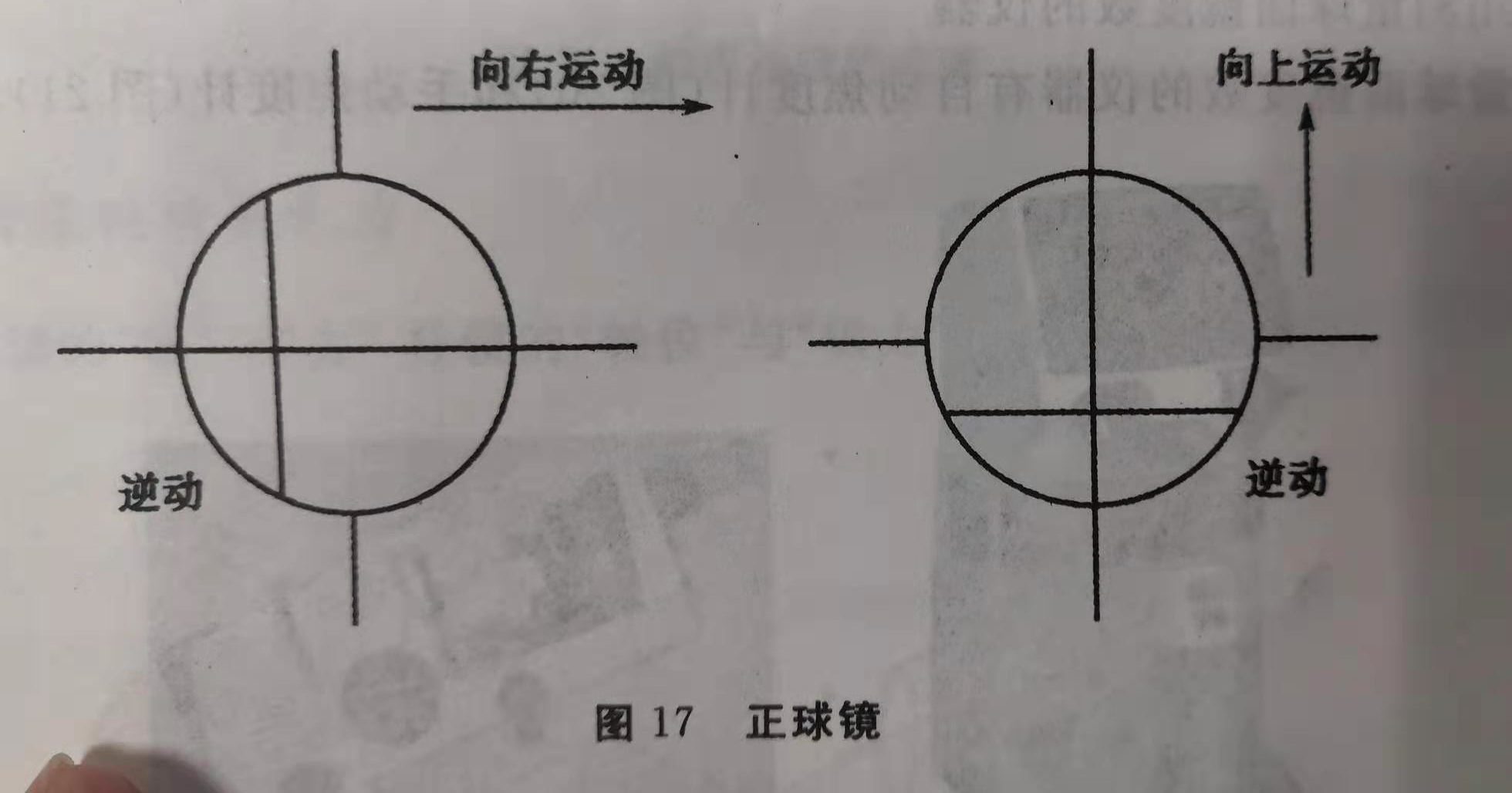 (2)正球镜:无剪动,两侧均逆动(图17)。